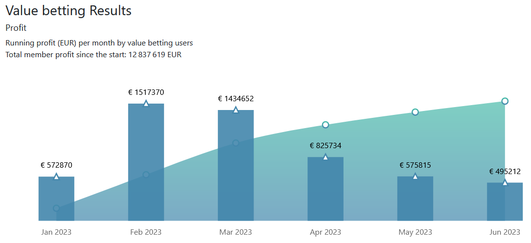 - RebelBetting kasutajate poolt tehtud 12.3 miljonit panust kasumiga 12.8 miljonit eurot (seisuga juuli 2023)